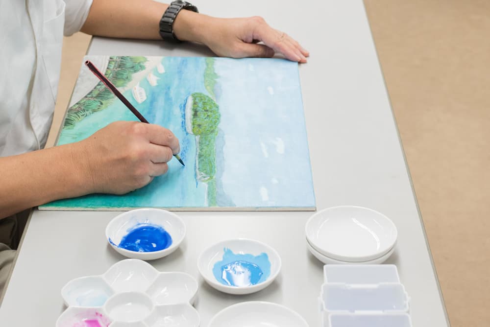 長い歴史を持つ日本画の魅力を多くの方に知っていただきたいと考えております。他分野の作家さん、OLさん、リタイアされた方、外国の方、どなたでも学ぶ気持ちのある方は気軽に学んでいただける教室にしたいと考えております。画材は個人所有ですが、初心者の方には、ほとんどの画材を貸し出ししておりますので高価な材料費についてのご心配は不要です。